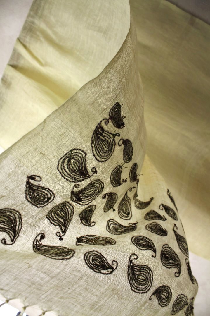 西ベンガル地方で作られた刺繍入りのリネンストール透け感が涼しげな印象のリネンストール!!軽くて薄いので持ち運びも楽々♪